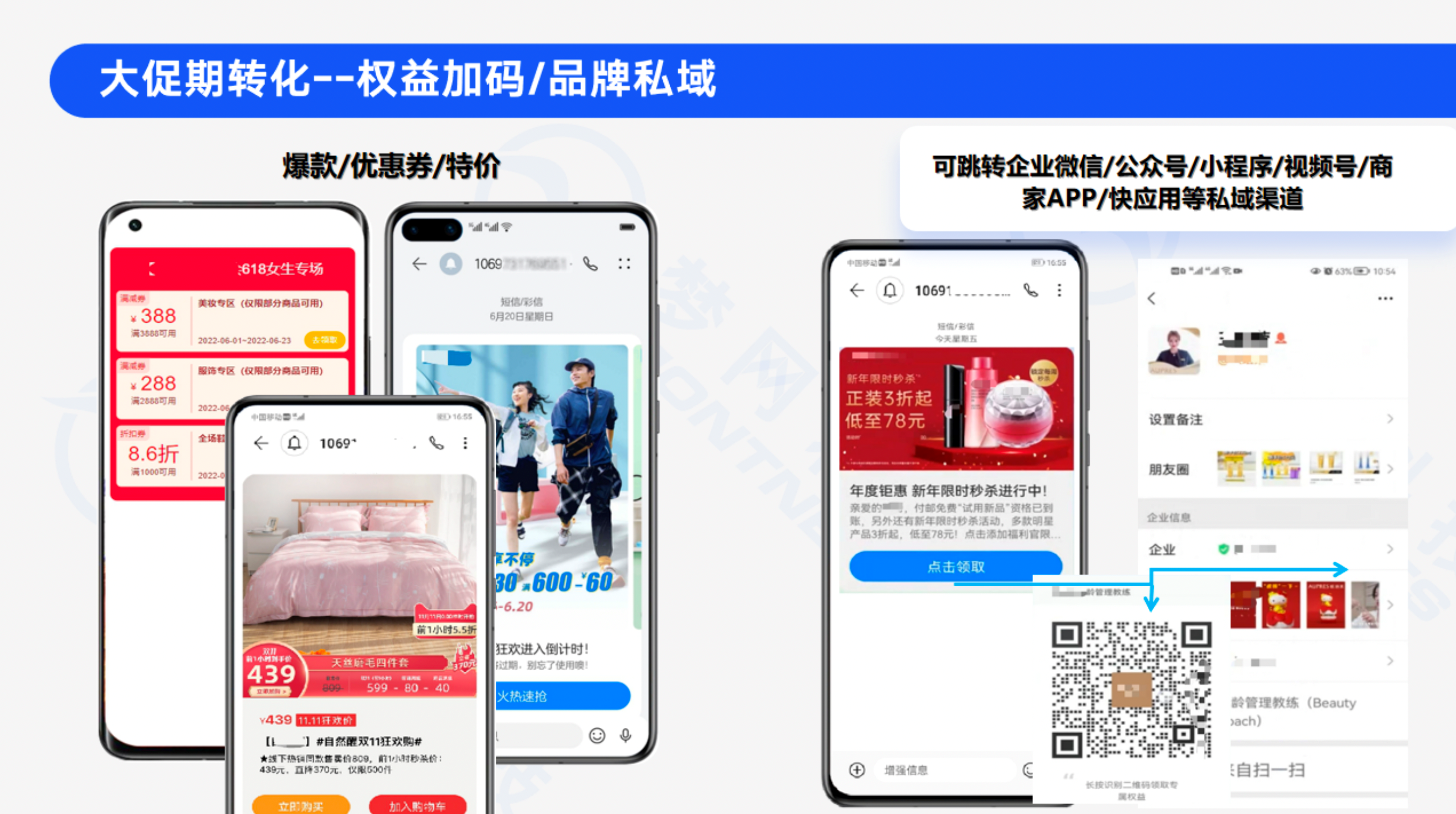 618返场阶段更是考验私域运营的能力,不同参与主体都希望以“四两拨千斤”的巧劲,带动全域生意跃迁。5G富媒体消息的投放不仅可以把商品与用户进行深度链接,还能为店铺、橱窗引流,沉淀支持店铺长期开展的人群资源,实现短链种收、全局提效。